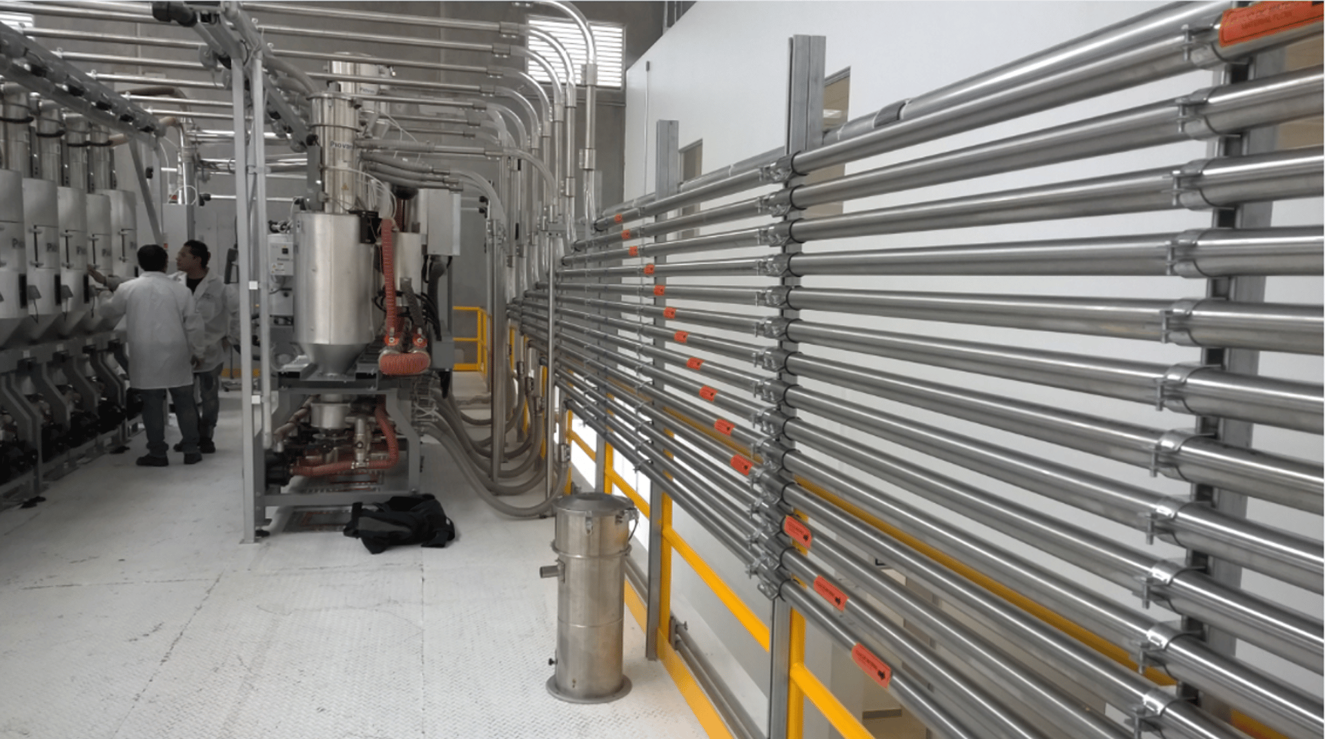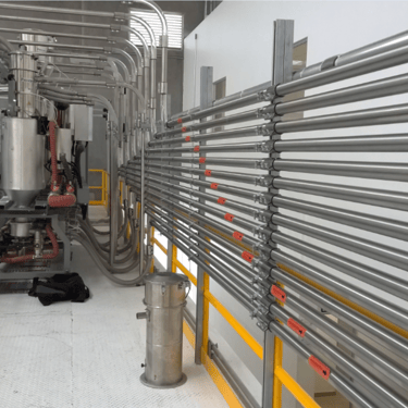 Tuberías, conexiones, equipos y accesorios de suministro para el transporte de resinas plásticas y materiales granulares.