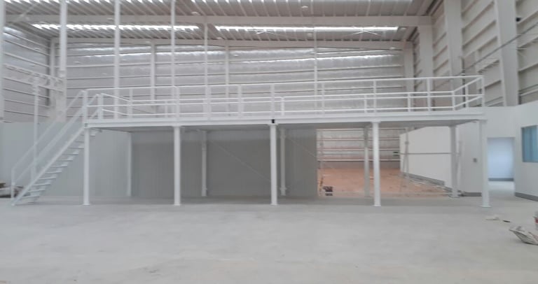 📐 Aprovecha tu altura libre y duplica tu espacio útil con un mezzanine diseñado a tu medida.